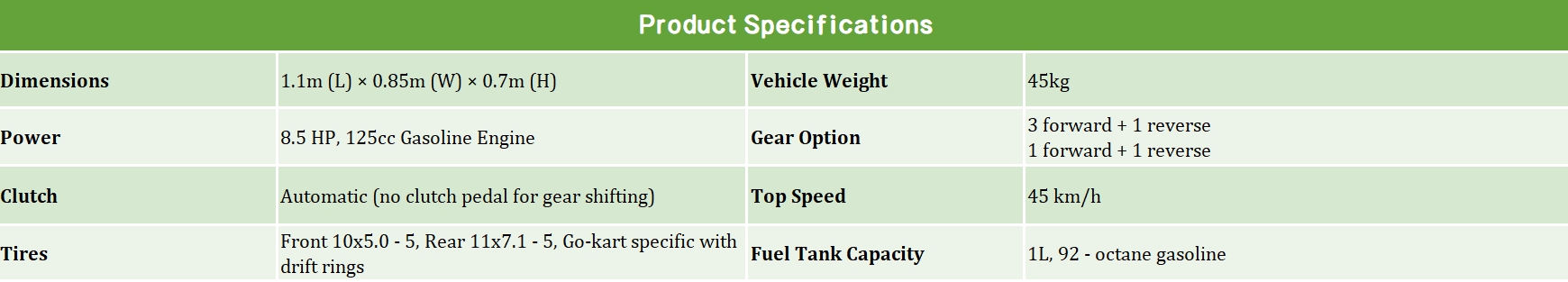 Light Weight 125cc Drift Kart Go Kart 8.5HP Kart with Auto Clutch